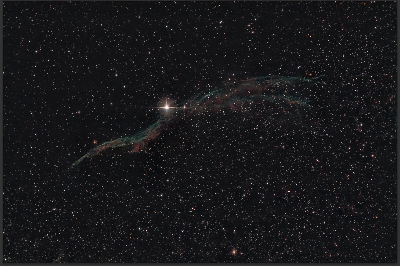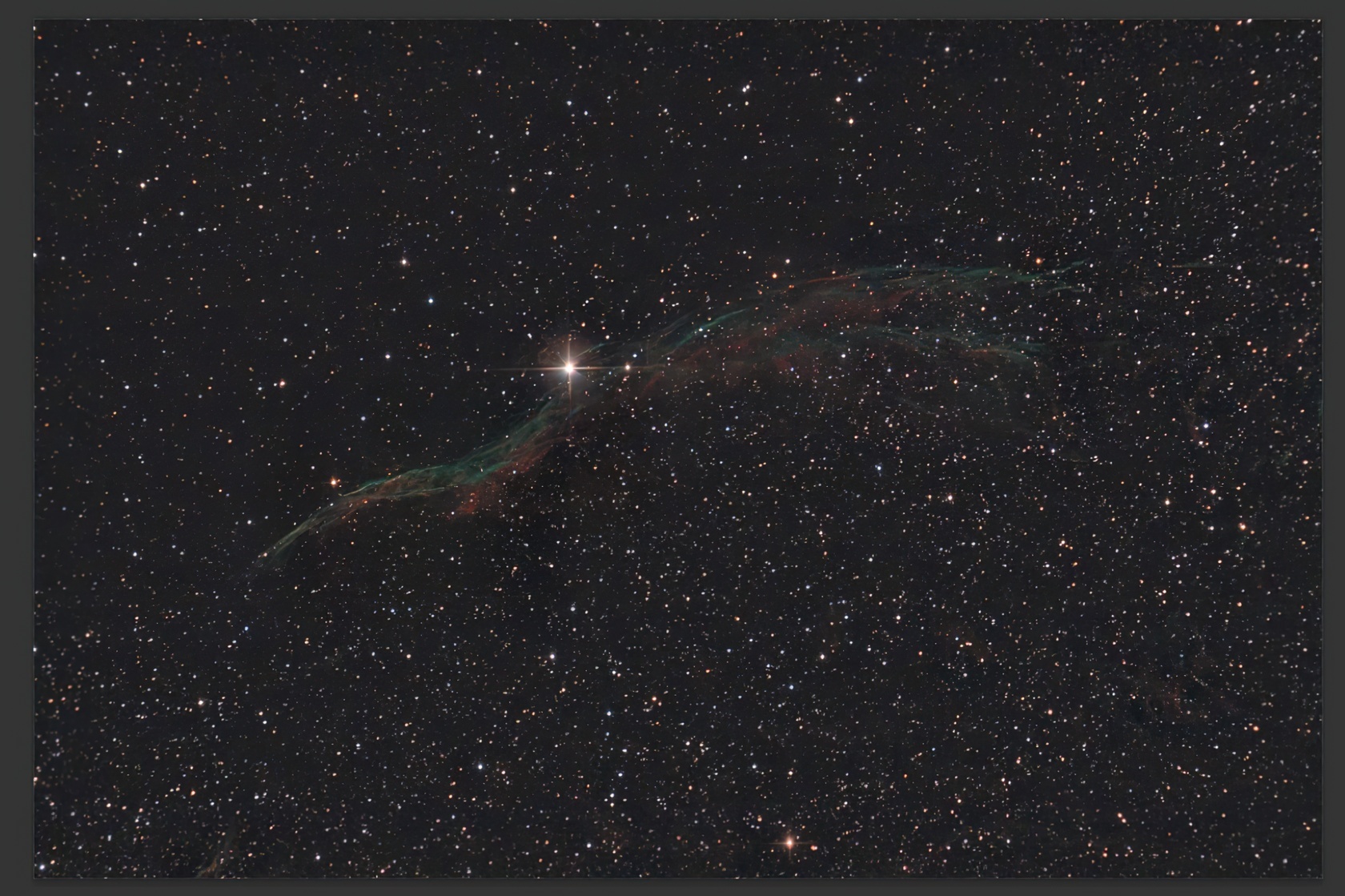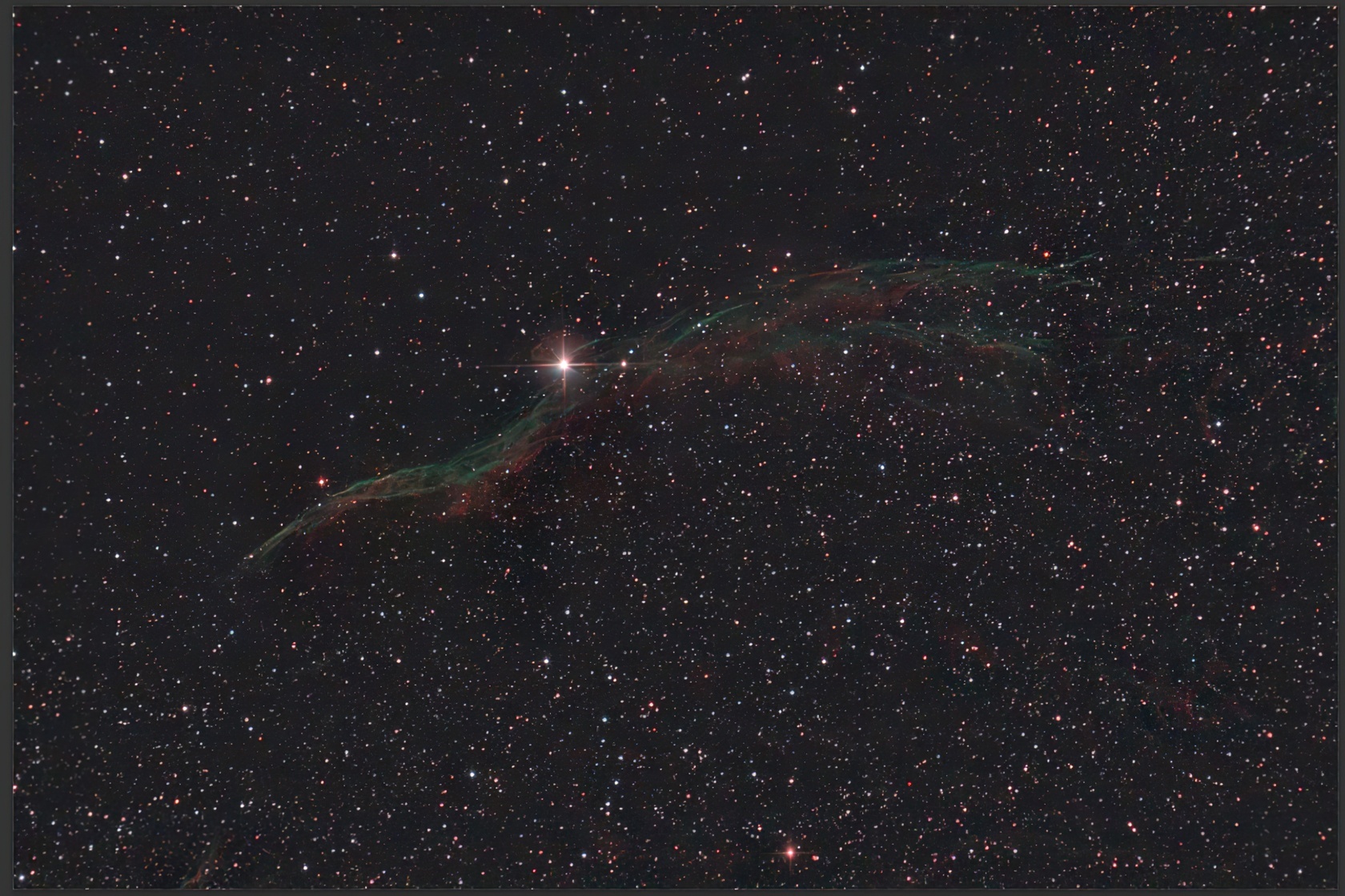 Фон стал нейтральным, а цветными остались только небольшие участки туманности, едва заметные из-за короткой выдержки.