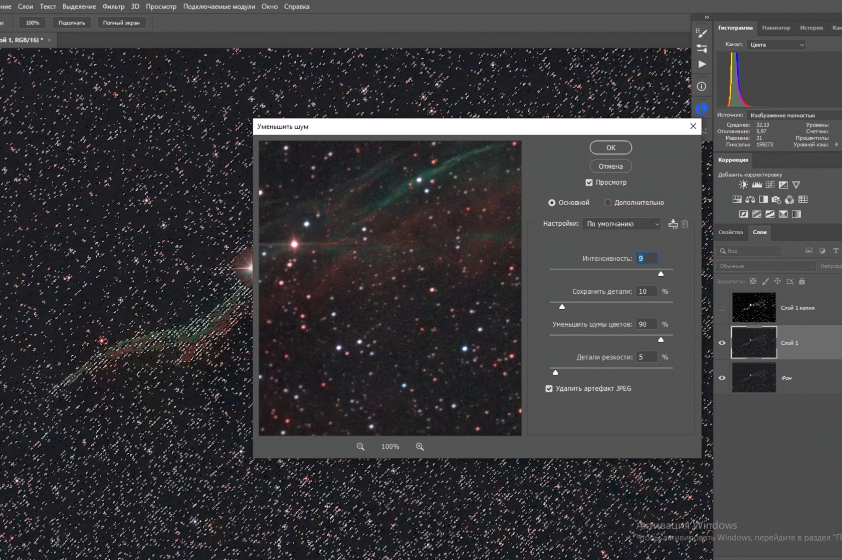 На предыдущих этапах мы получили базовое изображение, которое уже выглядит готовым, но его ещё есть куда улучшать. Для финальной доработки удобно использовать Photoshop. Например, здесь можно побороться с оставшимися шумами.