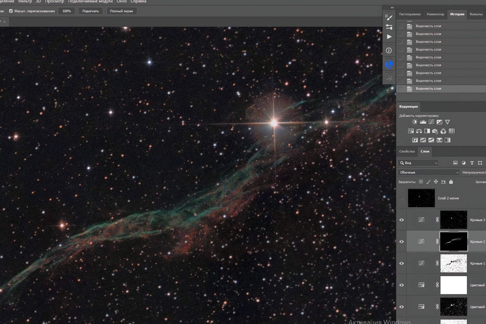 Классическая обработка фотографий объектов дальнего космоса обычно включает несколько этапов: отбор бракованных кадров, создание стека из выбранных снимков с добавлением калибровочных кадров, выравнивание фона и первичную коррекцию цветов, а затем — финальную доработку изображения в графических редакторах. Давайте разберём каждый шаг подробнее.