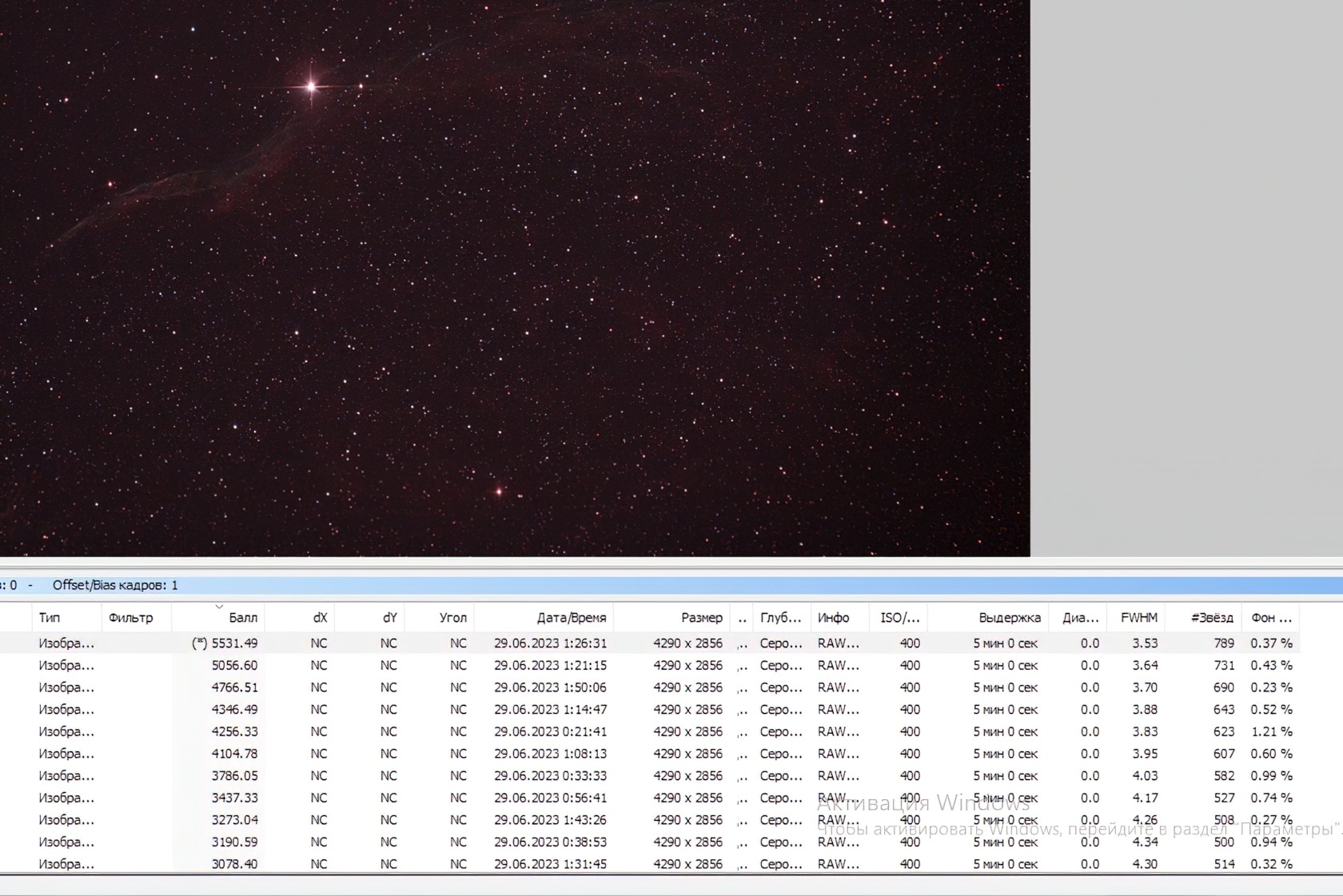 Просмотрите все отснятые кадры вручную и удалите бракованные: снимки с сильно потянутыми звёздами, заметным расфокусом или иными дефектами.