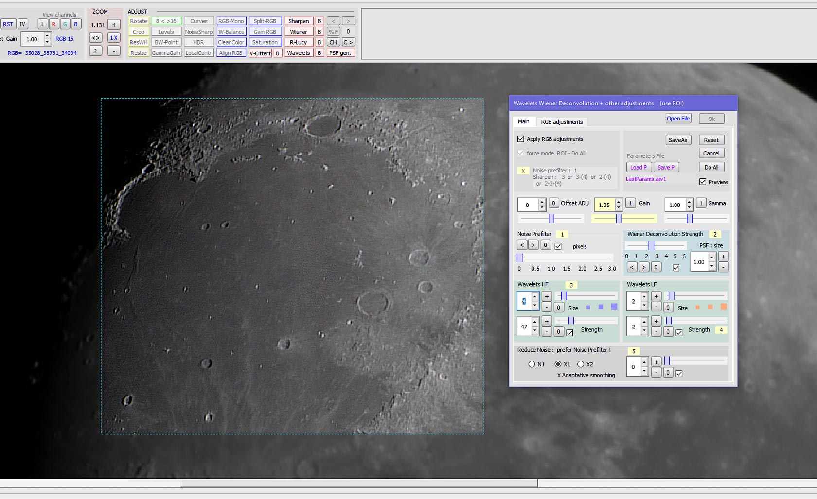 Получив стек Луны, открываем последнюю программу для обработки поверхности Луны «с деталями» — AstroSurface.
