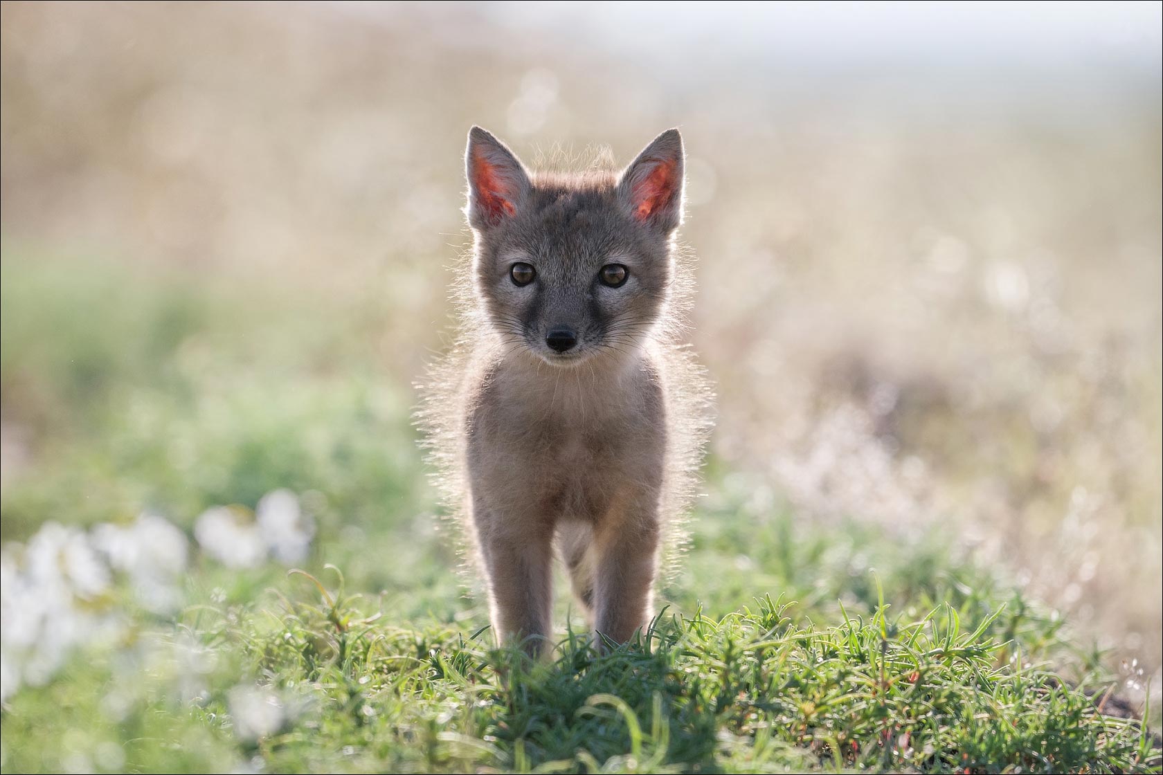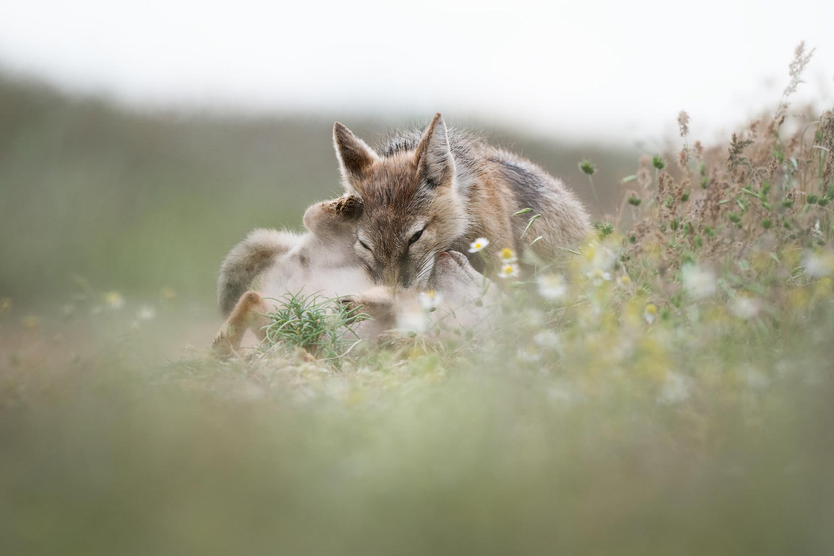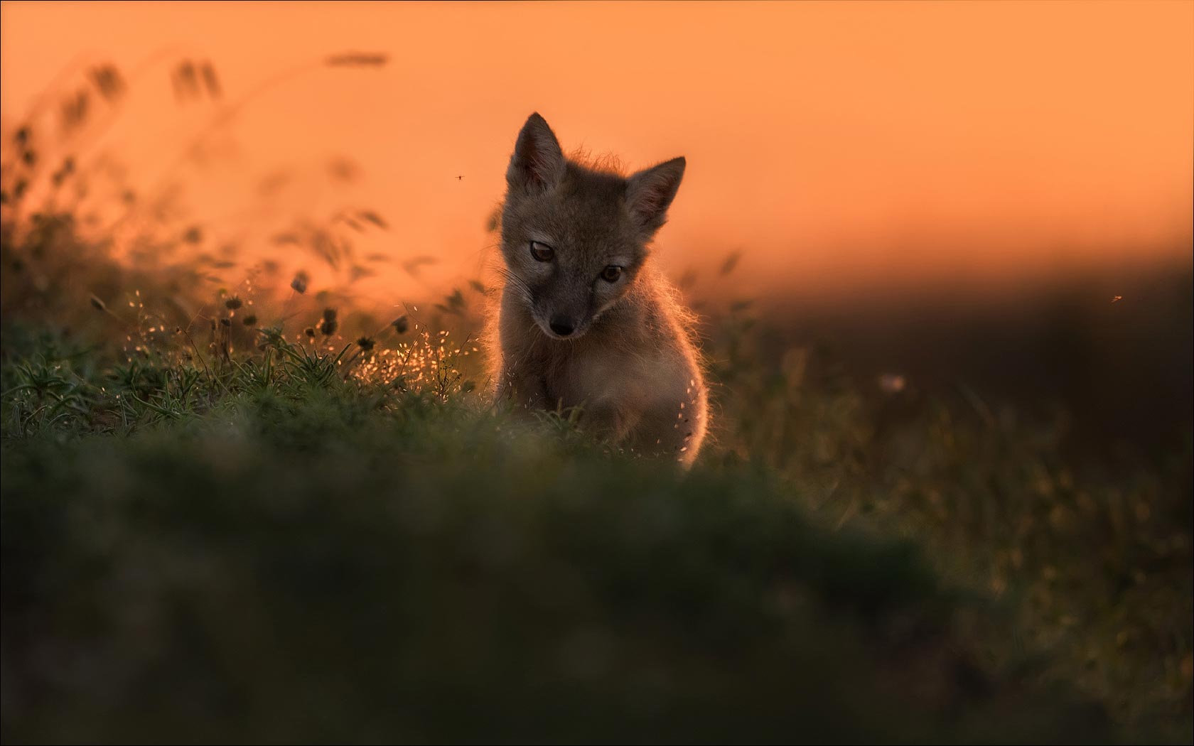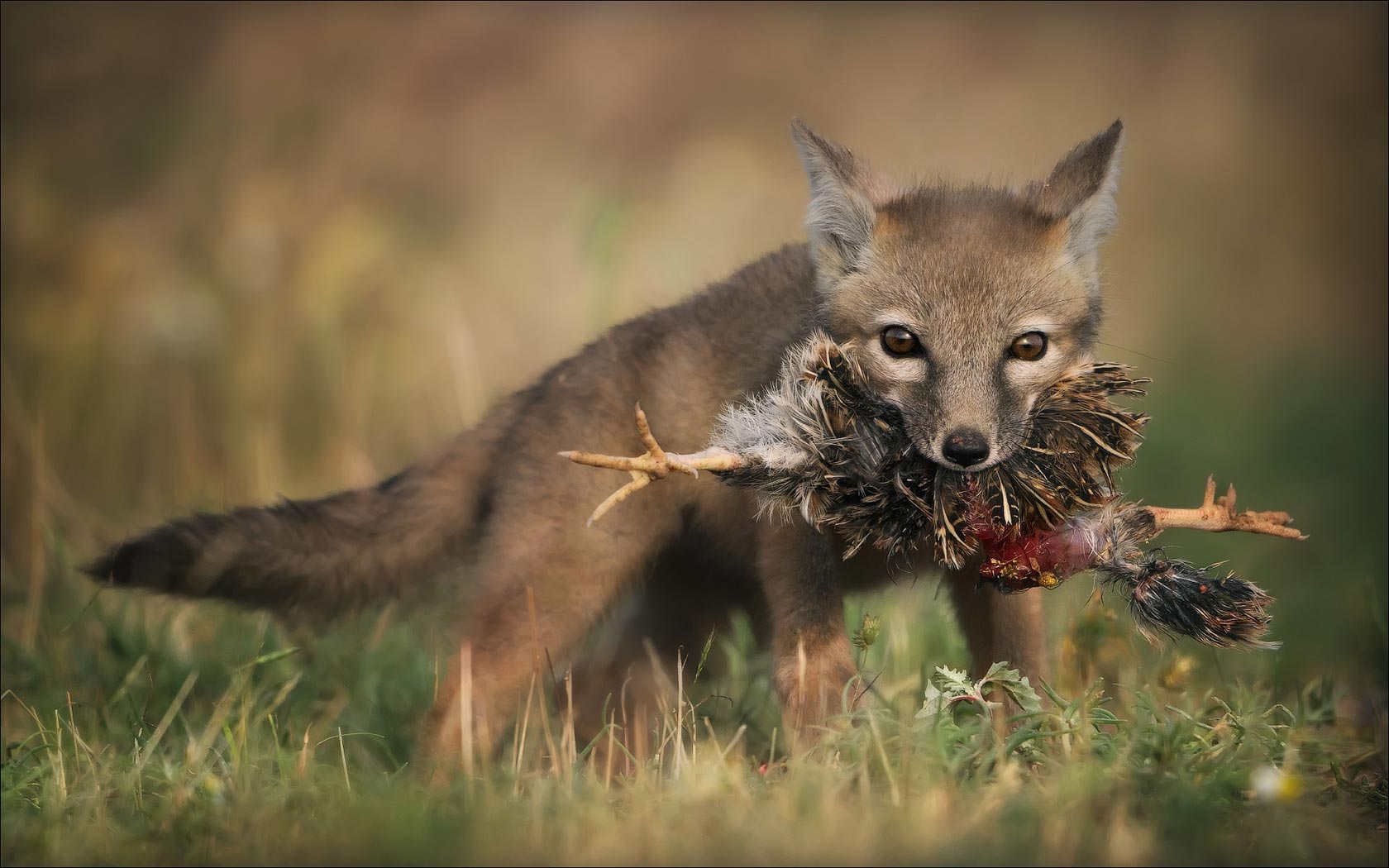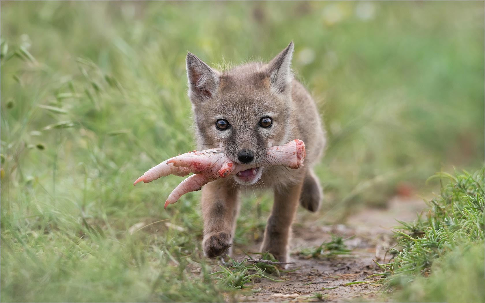 В этом году в степи очень много осадков, и как результат — высокая трава, которая надёжно прячет малышек. Представьте себе котёнка — вот и корсачёнок примерно такого же размера. Но растут они очень быстро и уже к 4–5 месяцам достигают размеров взрослой особи.