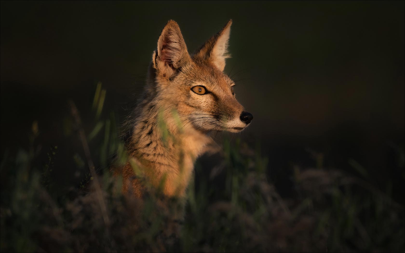 Острое зрение позволяет замечать малейшее движение, а способность к длительным переходам помогает выживать там, где почти нет укрытий и воды. Уши крупные — помогают слышать движения добычи и отводить лишнее тепло в жару. Мордочка узкая и острая.