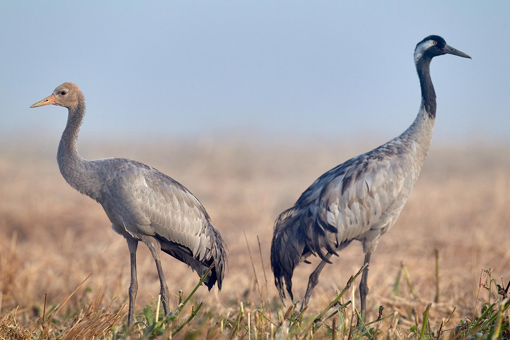 Серые журавли — крайне осторожные птицы, они образуют пары на всю жизнь и выращивают своё потомство с большой ответственностью. Ревностно оберегая вначале кладку, а затем и подрастающих птенцов, родители проявляют поистине «человеческую» заботу о них. Птенцов в гнезде, как правило, двое, и растут они очень долго, поэтому увидеть семейный «квартет» в полном составе чаще всего можно только ближе к началу осени. Всё чаще покидая свой родительский очаг на болотах, семья начинает держаться на полях и лугах, где питание гораздо богаче. Эти места – так называемые жировки, в которых сеголетки набираются сил перед тяжёлым и опасным перелётом с родителями на юг, где многотысячные семьи журавлей остаются зимовать.