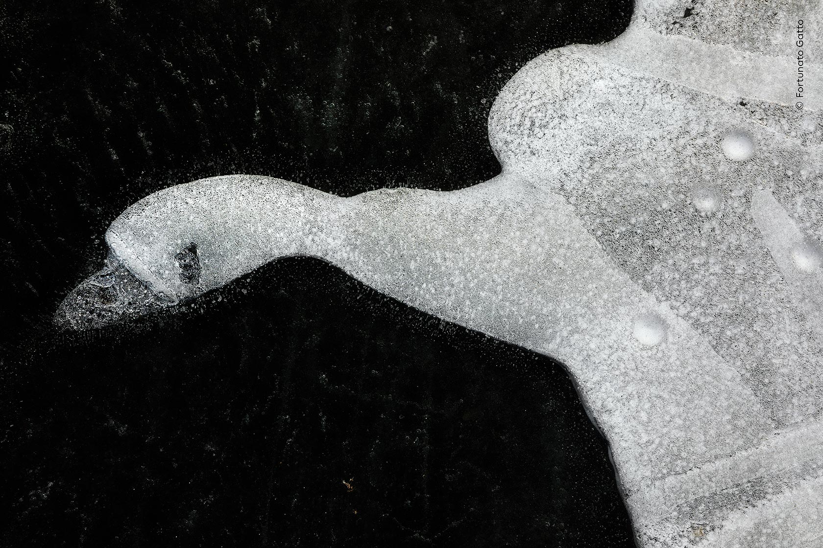 The Frozen Swan от Fortunato Gatto. Когда смотришь галерею, где кто-то кого-то ест, и вдруг видишь эту работу — невольно думаешь: «Ну вот, лебедь вмёрзший в лёд — драма дикой природы». И тут оказывается, что это просто лёд — ни один лебедь при съёмке этого кадра не пострадал. Эта работа доказывает: чтобы создать кадр, способный брать награды на престижных конкурсах, не обязательно ехать на край света и неделями сидеть в скрадке. Иногда достаточно просто повнимательнее посмотреть под ноги.