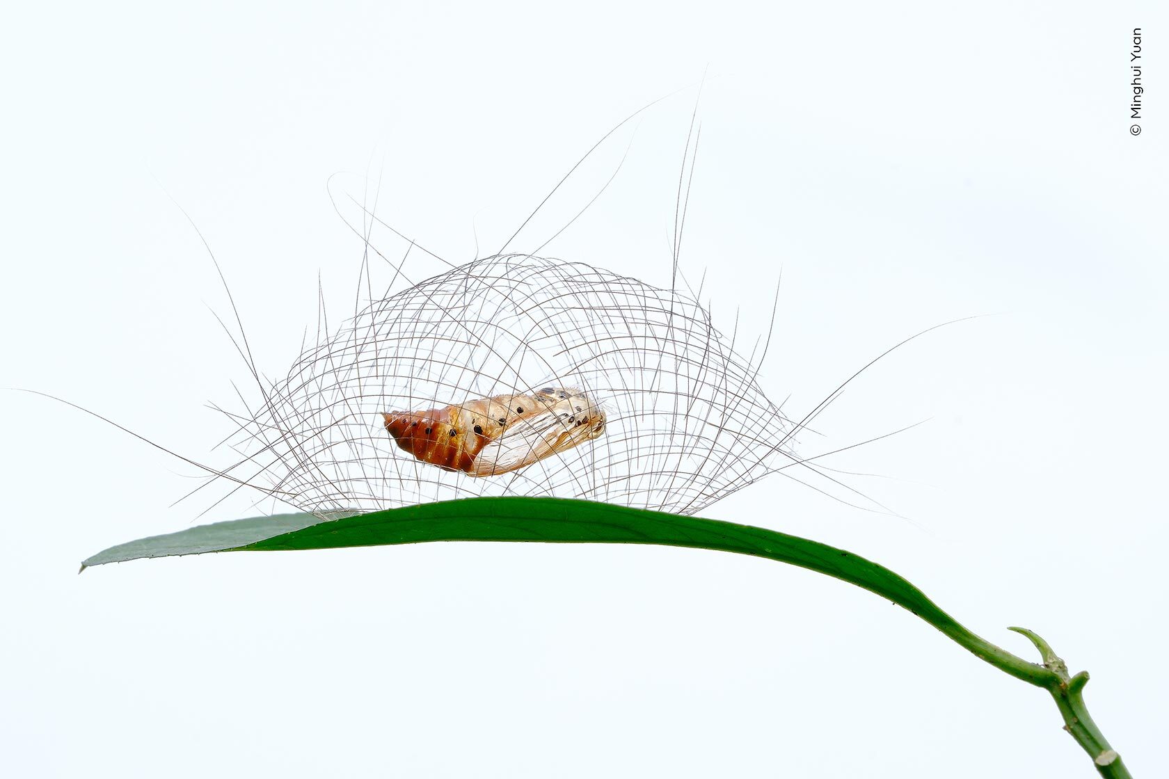 Поражает выделяющаяся архитектура колыбельки кокона на светлом фоне! Заслуга автора фотографии, которому получилось запечатлеть каждую деталь этого хрупкого, но потрясающе красивого каркаса! Minghui Yuan наверняка знал, что контрастные тёмные детали будут отлично выделяться на фоне неба. Тот случай, когда методическая подкованность позволила создать шедевр!